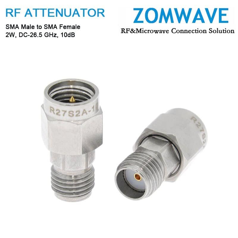 10dB Fixed Attenuator, SMA Male to SMA Female, 2Watts, DC-26.5GHz, VSWR<1.2