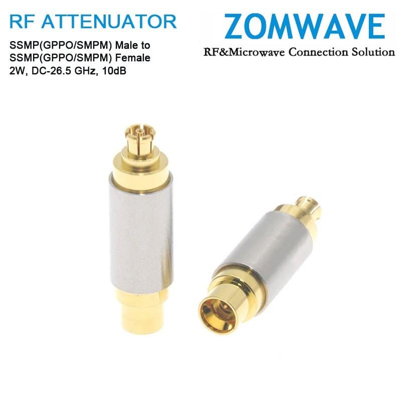 10dB Fixed Attenuator, SSMP(GPPO/SMPM) Male to SSMP(GPPO/SMPM) Female ,2Watts, DC-26.5 GHz, VSWR