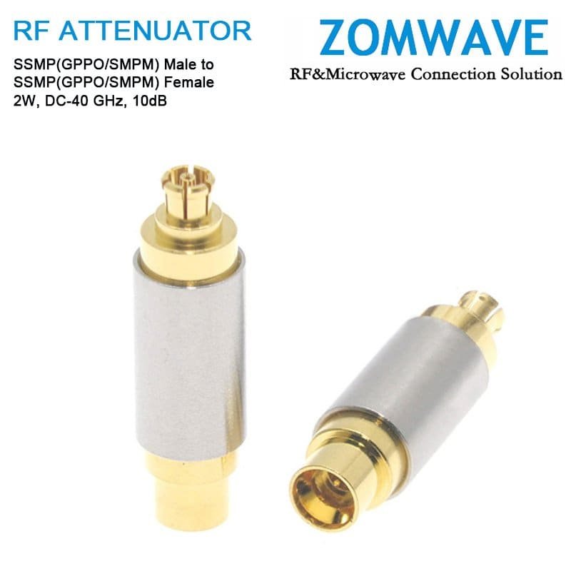 10dB Fixed Attenuator, SSMP(GPPO/SMPM) Male to SSMP(GPPO/SMPM) Female ,2Watts, DC-40 GHz, VSWR<1.45