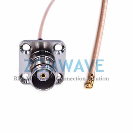 U.FL Plug Right Angle to N Type Female 4 hole Flange, RG178 Cable, 6GHz