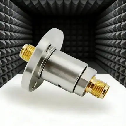 The ZOMWAVE RF rotary joint RJ-RF-2C1MAJS-04G-01 is a dual-channel straight rotary joint designed for critical radar and rotating antenna systems. Engineered to exacting radio frequency standards, it ensures reliable signal integrity in demanding applications including air traffic control, maritime, vehicular, and mobile radar platforms.
