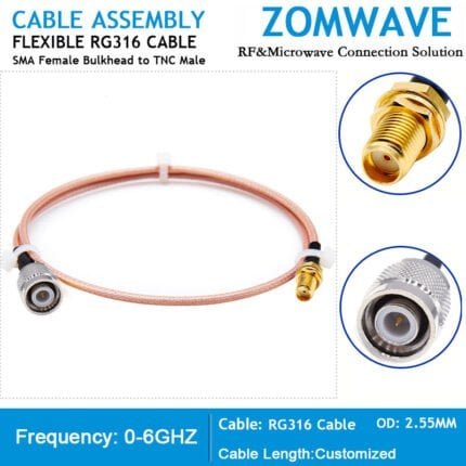 ZOMWAVE delivers premium coaxial cable assemblies, including specialized options like tnc male for rg174 sky window type, with no minimum order quantity and expedited 5-day shipping. Our flagship SMA Male to TNC Female Bulkhead Waterproof assembly features RG316 flexible coax cable, designed with a 50 Ohm impedance, PTFE dielectric, and a 0.102-inch FEP jacket. This construction ensures top performance across industries such as automobiles, broadband, industry 4.0, instrumentation, medical treatment, military, quantum computing, smart agriculture, and 5G wireless. Every assembly is 100% fully tested to guarantee high quality and reliability. The RG316 cable includes a silver-plated copper-clad steel center conductor and tin-overcoated copper shield braiding to minimize signal leakage, making it perfect for interconnecting coaxial components or subsystems. Connectors are crafted from brass with a nickel-plated coupling nut over a gold-plated connector body for dependable connections. Available in a variety of lengths, our SMA Male to TNC Female Bulkhead Waterproof, RG316 Cable assemblies, along with custom variations, are shipped within 5 days to meet your project needs.